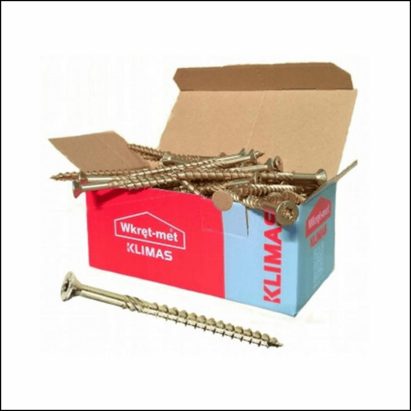 Wkręt ciesielskie konstrukcyjne renomowanej firmy Wkręt-met z łbem stożkowym i gniazdem TORX do połączeń konstrukcyjnych elementów drewnianych m.in. do drewna litego i płyt drewnopochodnych, listew i drewnianych elementów wykończeniowych, mebli i architektury ogrodowej.
